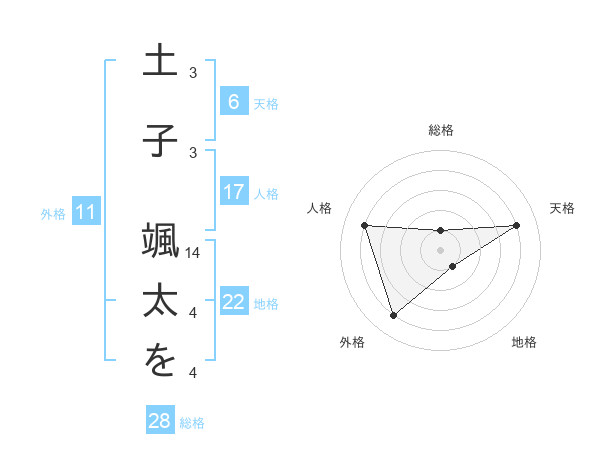 土子 颯太をさんを姓名の画数から五運を鑑定