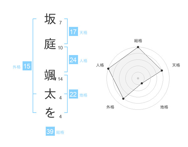 坂庭 颯太をさんの天格は17画の4点!