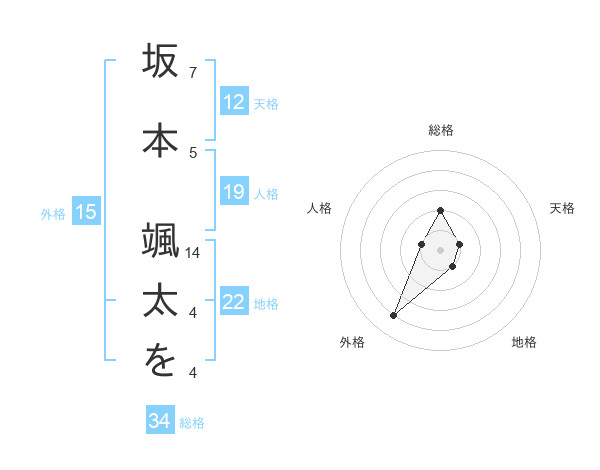坂本 颯太をさんを姓名の画数から五運を鑑定
