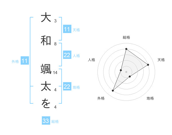 大和 颯太をさんを姓名の画数から五運を鑑定