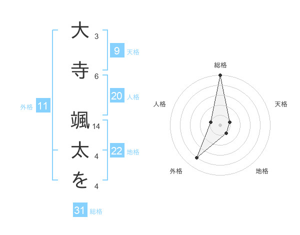 大寺 颯太をさんを姓名の画数から五運を鑑定