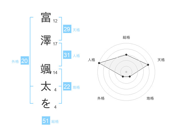 富澤 颯太をさんの総格は51画の3点!
