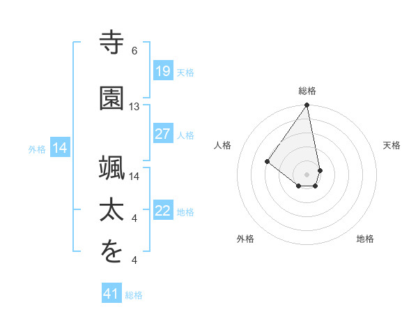 寺園 颯太をさんを姓名の画数から五運を鑑定