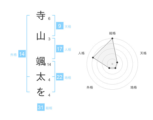 寺山 颯太をさんを姓名の画数から五運を鑑定