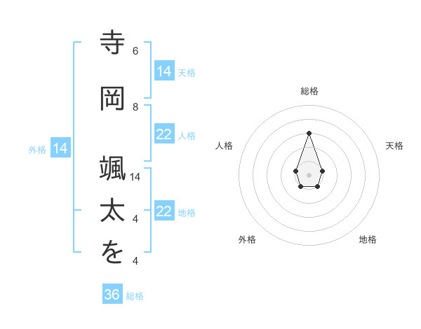 寺岡 颯太をさんの地格は22画の1点!