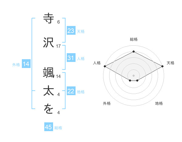 寺沢 颯太をさんの天格は23画の5点!