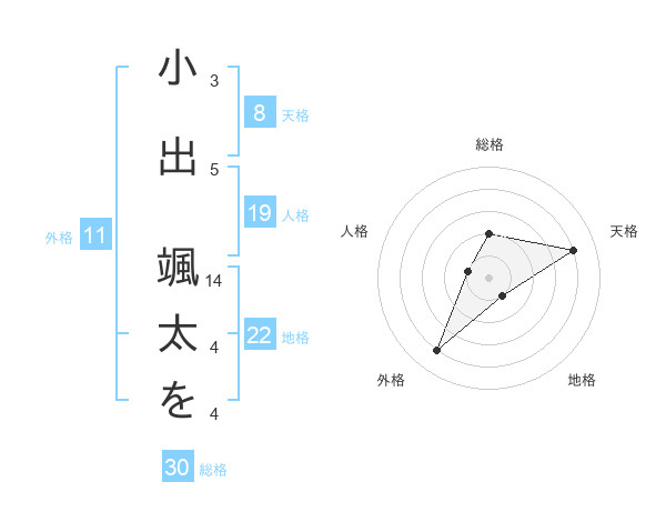 小出 颯太をさんの天格は8画の4点!