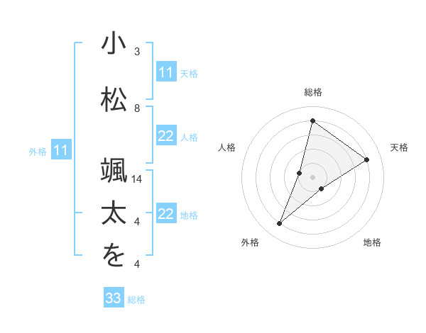 小松 颯太をさんを姓名の画数から五運を鑑定