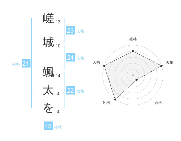 嵯城 颯太をさんを姓名の画数から五運を鑑定
