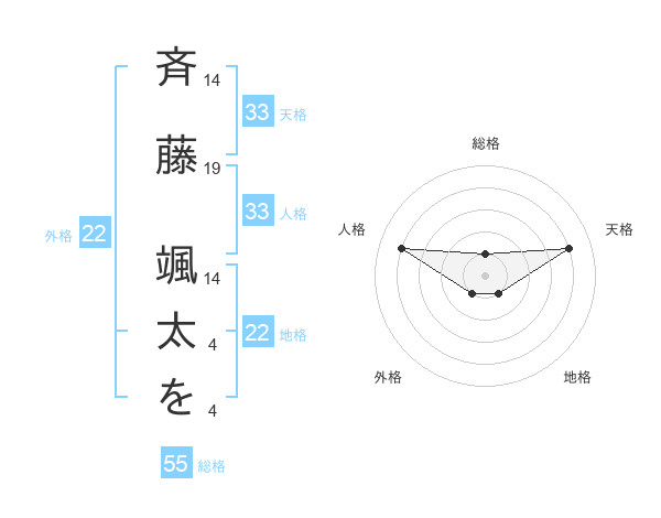 斉藤 颯太をさんを姓名の画数から五運を鑑定