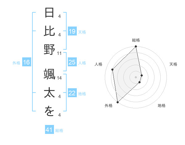 日比野 颯太をさんを姓名の画数から五運を鑑定