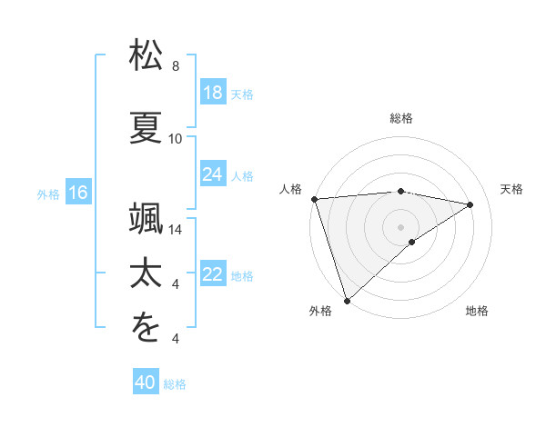 松夏 颯太をさんの天格は18画の4点!
