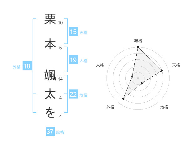 栗本 颯太をさんを姓名の画数から五運を鑑定