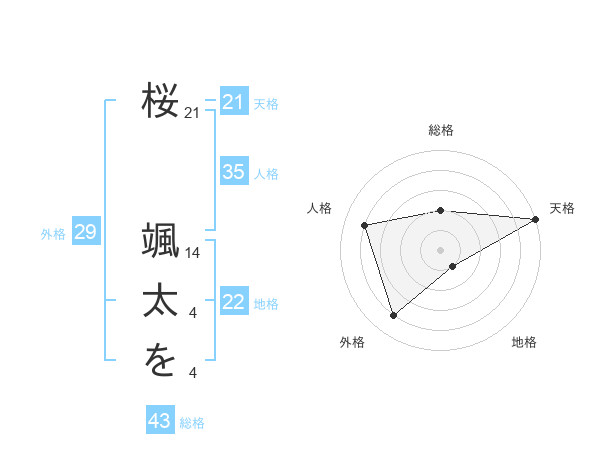 桜 颯太をさんの天格は21画の5点!
