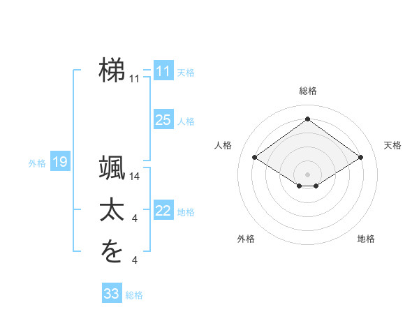 梯 颯太をさんを姓名の画数から五運を鑑定
