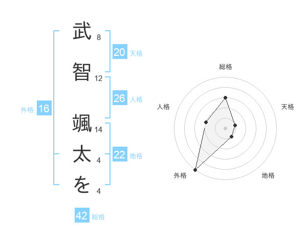 武智 颯太をさんの外格は16画の5点!
