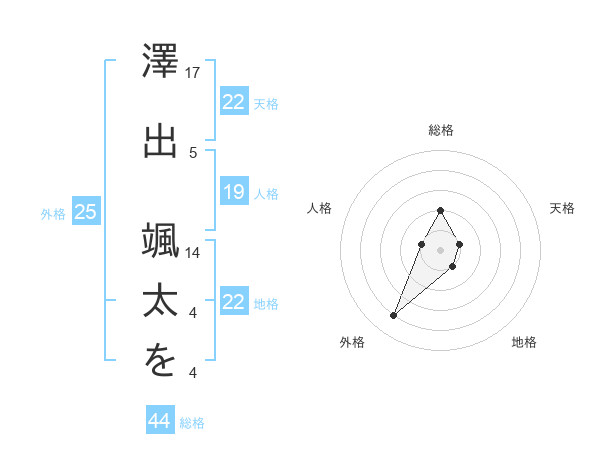澤出 颯太をさんを姓名の画数から五運を鑑定