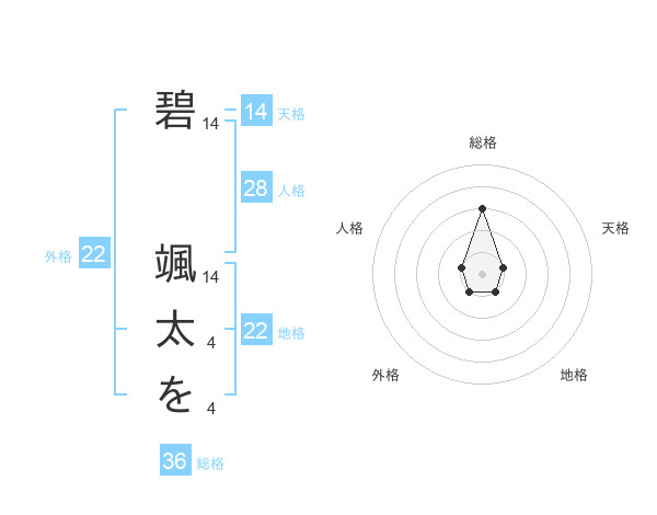 碧 颯太をさんの天格は14画の1点!