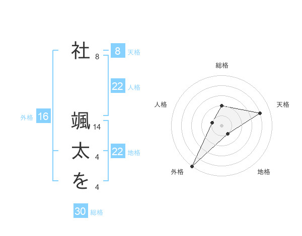 社 颯太をさんの天格は8画の4点!