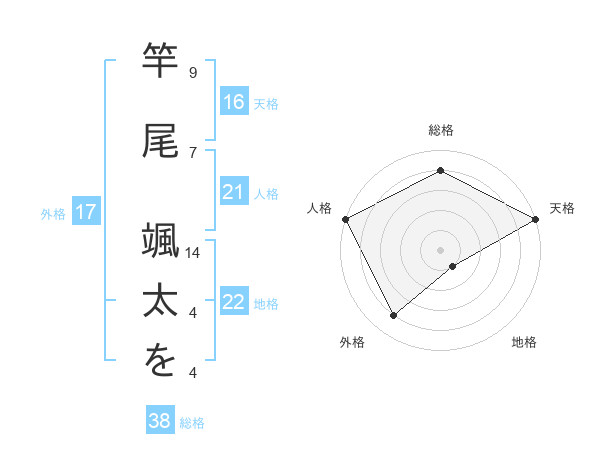 竿尾 颯太をさんを姓名の画数から五運を鑑定