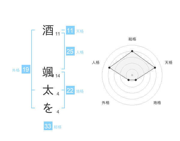 酒 颯太をさんを姓名の画数から五運を鑑定