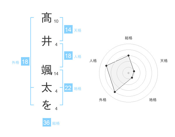 髙井 颯太をさんを姓名の画数から五運を鑑定