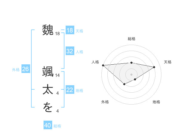 魏 颯太をさんの天格は18画の4点!