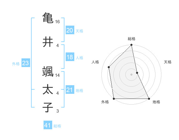 亀井 颯太子さんの外格は23画の5点!