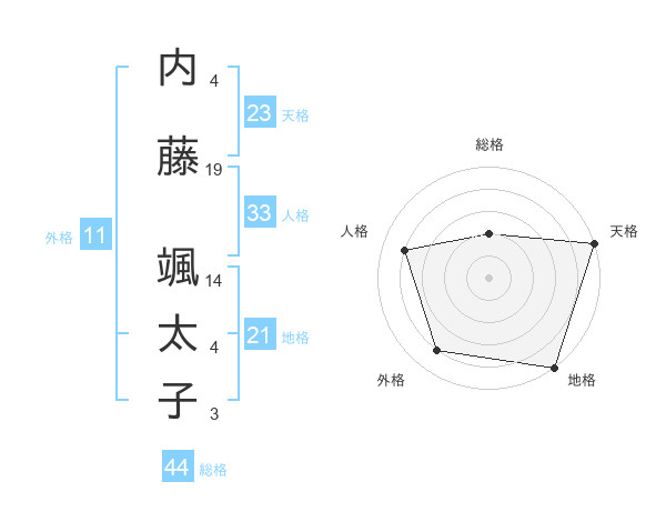 内藤 颯太子さんを姓名の画数から五運を鑑定