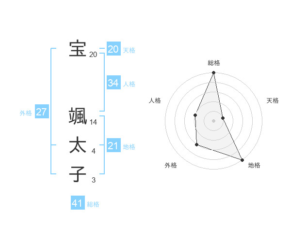 宝 颯太子さんの外格は27画の3点!