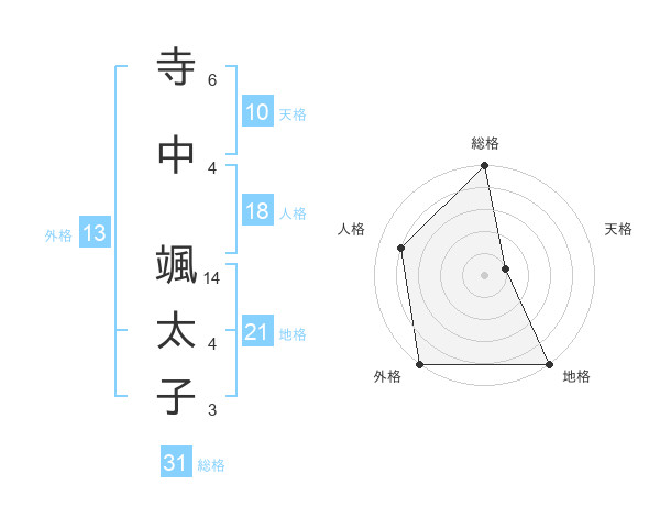 寺中 颯太子さんの外格は13画の5点!