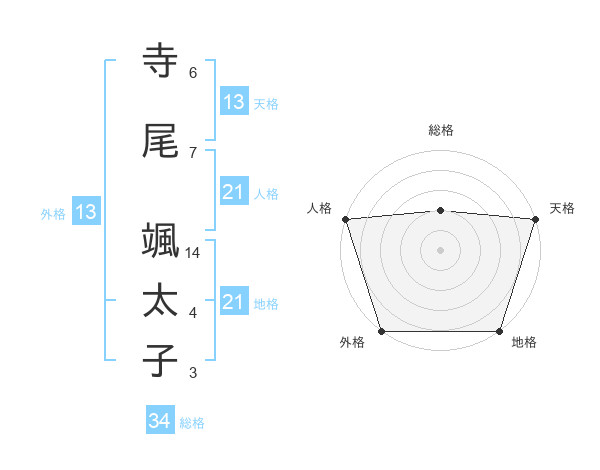 寺尾 颯太子さんの天格は13画の5点!