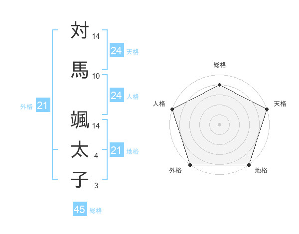 対馬 颯太子さんを姓名の画数から五運を鑑定