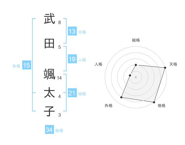 武田 颯太子さんを姓名の画数から五運を鑑定