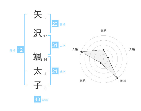 矢沢 颯太子さんを姓名の画数から五運を鑑定