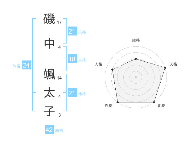 磯中 颯太子さんの天格は21画の5点!