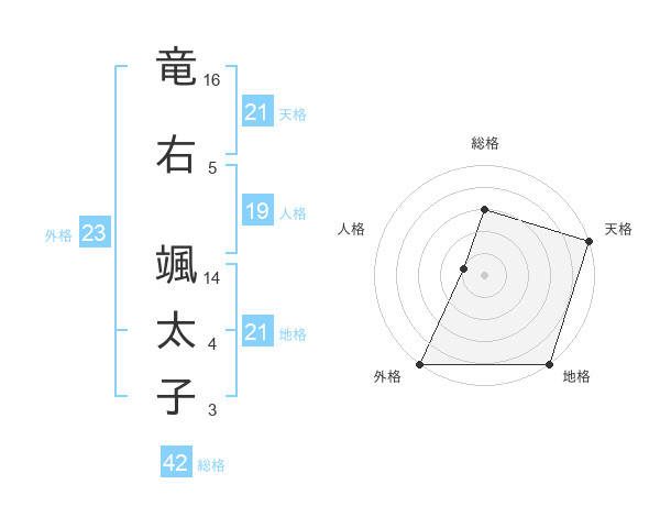 竜右 颯太子さんを姓名の画数から五運を鑑定