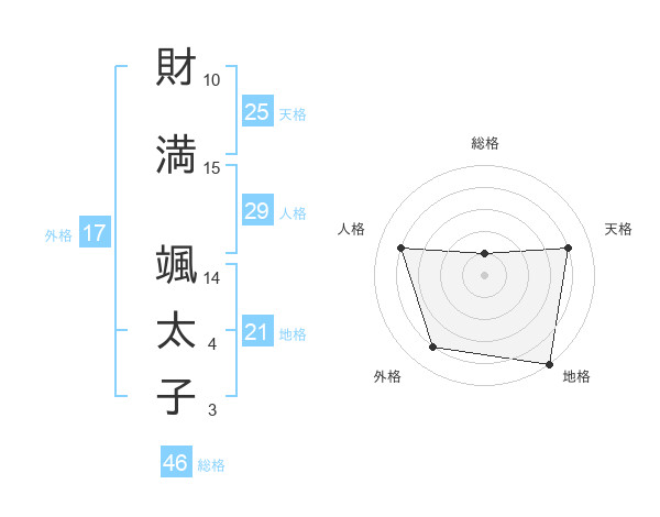 財満 颯太子さんを姓名の画数から五運を鑑定