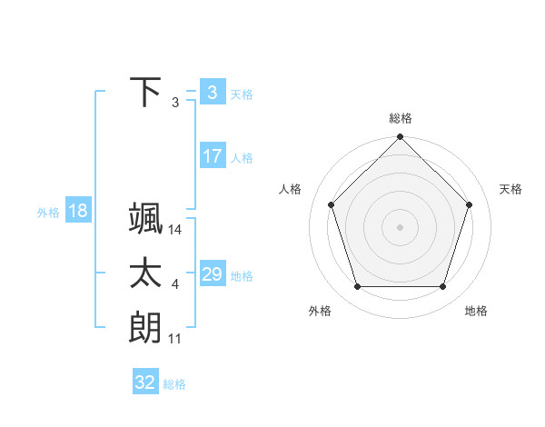 下 颯太朗さんを姓名の画数から五運を鑑定