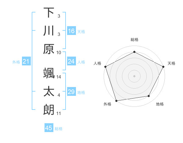 下川原 颯太朗さんを姓名の画数から五運を鑑定