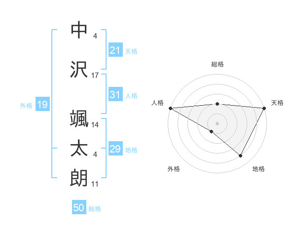 中沢 颯太朗さんの総格は50画の2点!