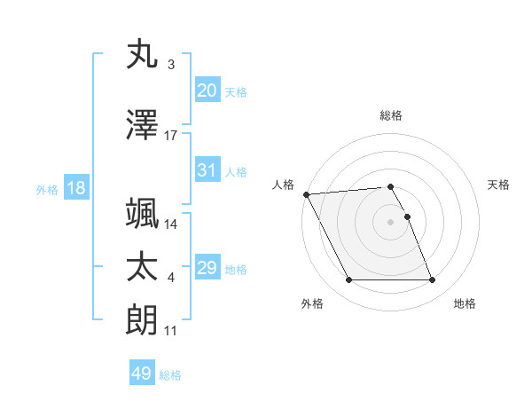 丸澤 颯太朗さんの総格は49画の2点!