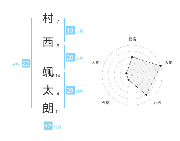 村西 颯太朗さんの天格は13画の5点!