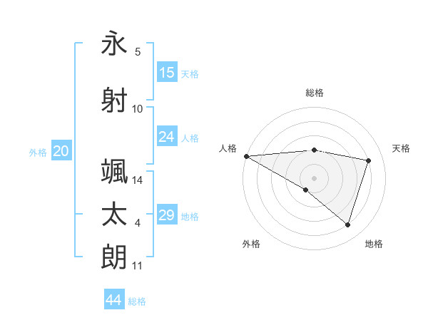 永射 颯太朗さんの天格は15画の4点!