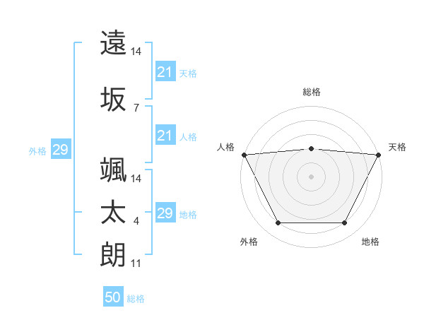 遠坂 颯太朗さんの天格は21画の5点!