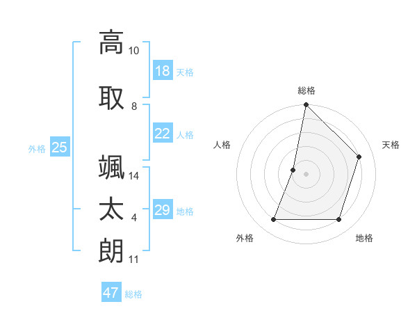 高取 颯太朗さんの総格は47画の5点!