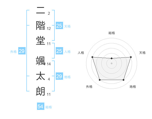 二階堂 颯太朗さんの天格は25画の4点!