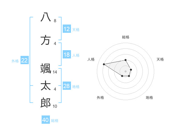 八方 颯太郎さんを姓名の画数から五運を鑑定