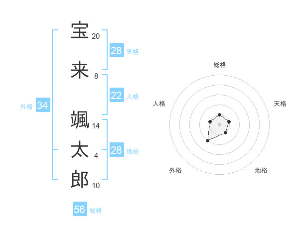 宝来 颯太郎さんの天格は28画の1点!