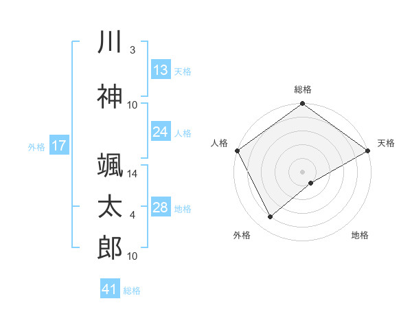 川神 颯太郎さんの総格は41画の5点!